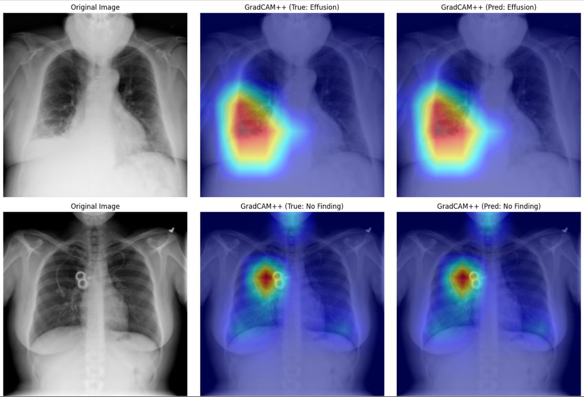 The AI Analysis module now demonstrates real GradCAM++ (Gradient-weighted Class Activation Mapping) performance — a technically sophisticated visualization method that highlights precisely which regions of a medical image the AI is using to form its conclusions. This is not a simulated output. It is a working computer vision system that interprets chest X-rays and other medical images with annotated accuracy. The AI now rapidly interprets uploaded scans, highlighting key findings, supporting diagnosis, and assisting radiologists with timely, accurate reporting.
